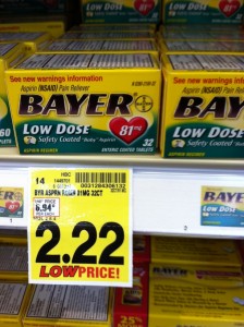 Or, $1.22 if your store does not double coupons.  There were $1 Bayer printable coupons out a few weeks ago (no longer available) or you should have $1 mfg. coupons in your binder or coupon box.