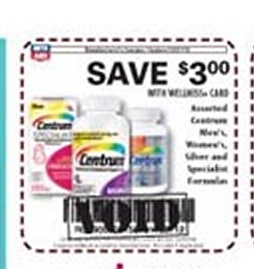 We have a great deal on Centrum Vitamins for you at Rite Aid this week (valid through 10/27/12). If you frequently shop Rite Aid and have reached enough Wellness points to achieve your 20% discount on non-sale items this is a really sweet deal!