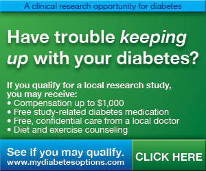 There is a new diabetes clinical research study enrolling here and if you live in one of the following states you may qualify:  MA,RI,NJ,NY,DE,PA,VA,WV,TN,IA,MN,WI,SD,KS,MO,CO,WY,ID,UT,WA,CA,AR,OK,TX,IN,IL,NC