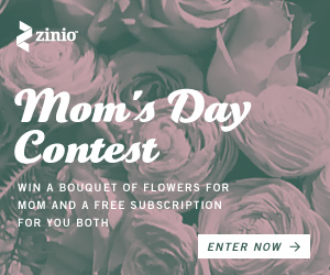Enter the Zinio Mother’s Day Contest to win the grand prize of a $200 bouquet of flowers for your mom and a $25 digital magazine subscription for yourself! Go here to enter.