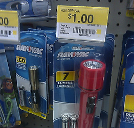 Take it to Walmart and head to the sporting goods store where they have small Rayovac flashlights for $1. See this photo, courtesy of Stingy Momma: