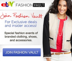 Sign-up for eBay Fashion Vault emails and become part of special fashion events of branded clothing, shoes, and accessories. Selections range from exclusive collections to special access events and one-of-a-kind items…and shipping is usually FREE!
