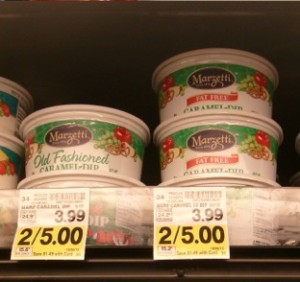 Right now Marzetti Caramel Dip is on sale 2/$5.  Use the $1/1 printable coupon found here and pay as low as $0.50 each if your store doubles $1 coupons.  If not, it is only $1.50 each!
