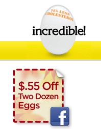 Hurry over to the Incredible Edible Egg Facebook page and print your coupon for $0.55 off 2 dozen eggs!