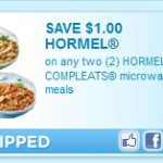 Head on over to Coupons.com to print 2 different Hormel Complete coupons! $1/2 Hormel Compleats Microwave Meals $1/2 Hormel Compleats Kids Meals