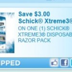 Save $3 off 1 Schick Xtreme3 Disposable Razor & Upcoming Deals