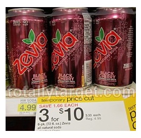Print the $3 coupon found here. Target has Zevia priced at 3/$10, so $3.33 each or $0.33 after coupon.